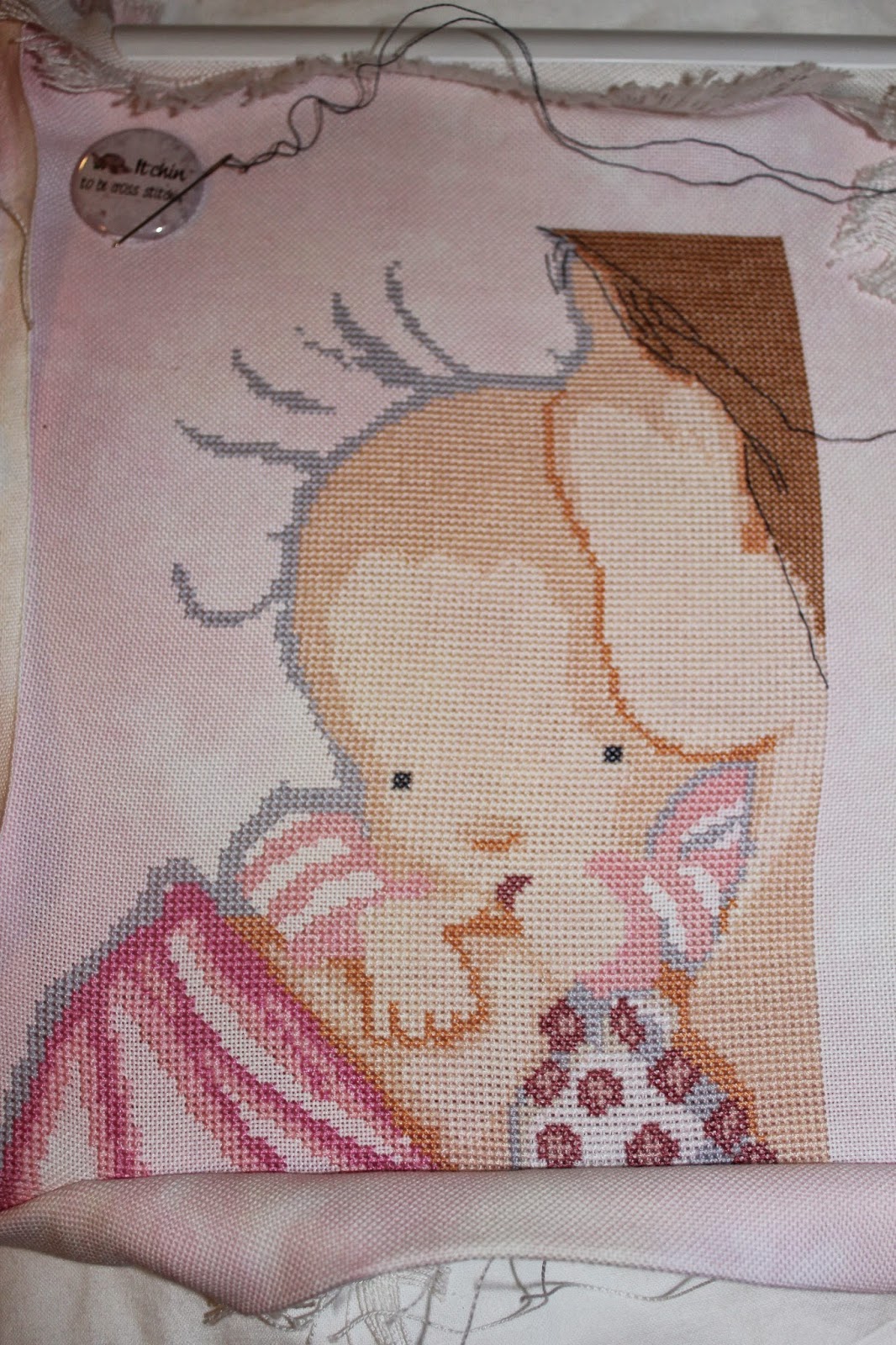 Losing Matilda and how busy it was with getting ready to sell our house entailed the start of the year with my stitching put on hold, I lost my motivation and didn't feel up to it at all even though I know it is very good therapy and has helped me through things before. It was frustrating though because I knew my baby sampler wasn't long off being finished. It doesn't help though with how much I am hating this backstitching!! I normally love back stitch but I HATE back stithcing this pattern. It is quite a challenge and hard to keep motivated. I have had a many few moments of being completely frustrated by it haha. My daughter is lucky she is loved so much, haha!